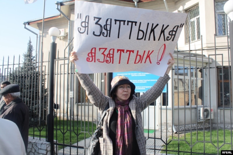15-мартта Бишкекте ЕККУнун имаратынын алдында кыргыз коомчулугу пикетке чыгып, “Азаттык” радиосунун обого чыгуусуна тоскоолдук жасабоого чакырды. Социал-демократиялык фракциянын лидери Роза Отунбаева “Азаттык” тууралуу буларды билдирди: